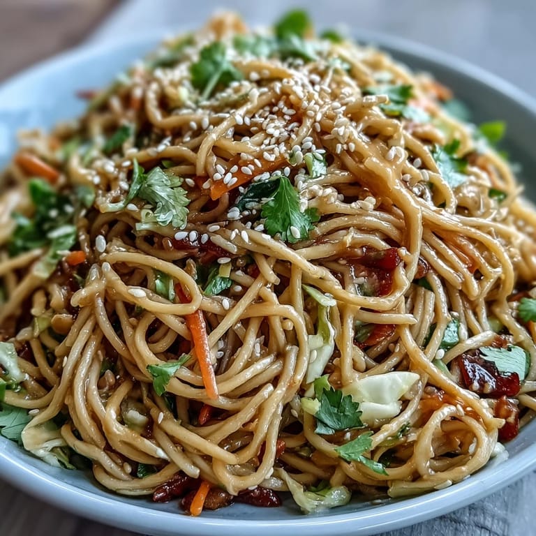 I brought this salad to a potluck once where everyone else had made their usual safe dishes, and I watched people go back for thirds while barely touching the other food. Someone's mom asked me for the recipe before she'd even finished eating, which felt like winning some invisible kitchen award. That moment made me realize how a simple bowl of noodles and vegetables could actually be the thing people remembered from the whole afternoon.