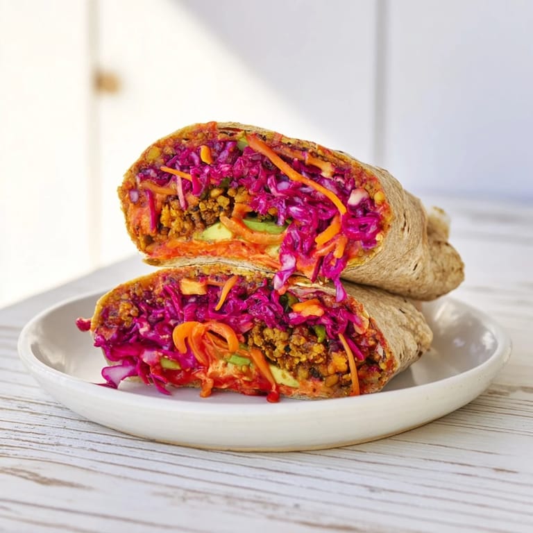 Save A vibrant, plant-based wrap featuring smoky BBQ chickpeas and a crunchy, colorful slaw—perfect for a fresh, satisfying holiday meal.