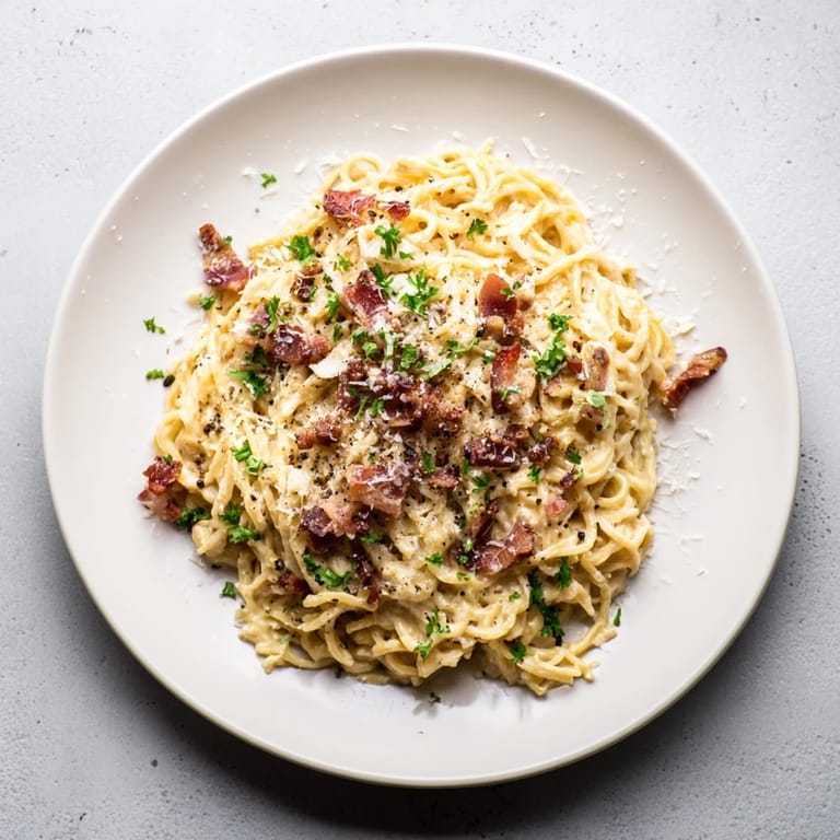 Save A quick and creamy fusion of classic Italian carbonara and Japanese ramen, ready in just 15 minutes. Perfect for busy weeknights, this dish combines silky noodles, smoky bacon, and a luscious egg-parmesan sauce—all made effortlessly in the Instant Pot.
