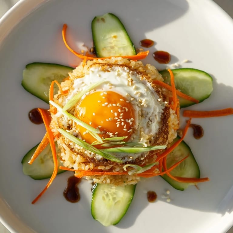 Save There's something about the sound of cold rice hitting hot oil that makes me pause—a sharp sizzle that promises something crispy, something different. I discovered this bowl during a lazy Tuesday afternoon when I had leftover rice and wanted to escape the usual stir-fry routine. The combination of that golden, crackling rice base with a runny egg yolk that melts into every bite felt like an accidental discovery, the kind of meal that makes you wonder why you don't cook it more often.