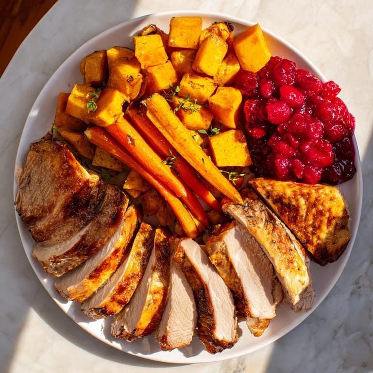 - Arrange sliced turkey on a large platter with roasted autumn vegetables. Serve with the cranberry-orange sauce on the side.