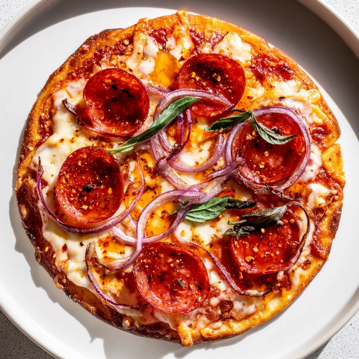 - Spread sauce thin, scatter cheese evenly, then layer pepperoni and red onion. The order matters because you want the cheese underneath the pepperoni so it catches all that rendered spicy oil.