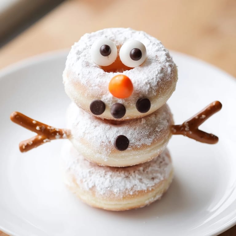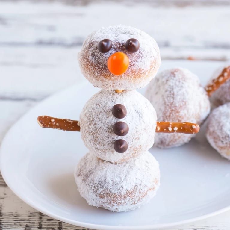 Save Adorable and fun mini donut snowmen stacked on skewers—a perfect no-bake winter snack for kids parties or holiday treats.