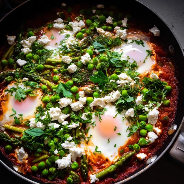 Omit eggs and feta, then add drained canned chickpeas or white beans during step 5. The legumes provide protein and absorb the spiced sauce beautifully. Top with extra herbs and a drizzle of olive oil before serving.