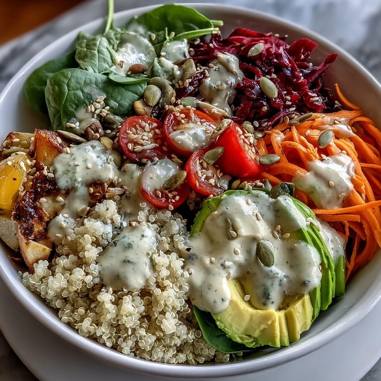 The genius of a Buddha bowl is that it's not overthinking lunch, it's just giving your body what it actually needs without making it feel like deprivation. Every element serves a purpose: the quinoa provides complete protein, the vegetables offer fiber and nutrients, the healthy fats from avocado and seeds keep you satisfied for hours, and the tahini dressing ties everything together with flavor that feels indulgent. It's the kind of meal where you look at what you've made and feel genuinely proud, not just full.