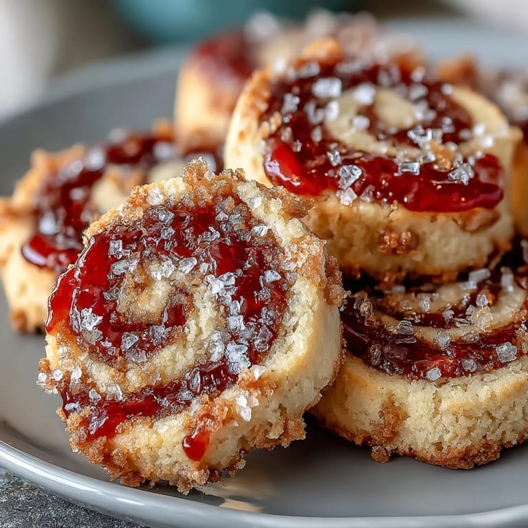 Save The smell of butter browning at the edges is what I notice first every time I make these. I had been searching for a cookie that felt elegant but didn't demand hours in the kitchen, and one afternoon I pulled together a simple shortbread dough, pressed my thumb into each round, and filled the wells with leftover jam from the fridge. The contrast between the crumbly, golden base and the jewel-toned swirl of raspberry was instant magic. Now they're my answer whenever I need something impressive that still feels approachable.