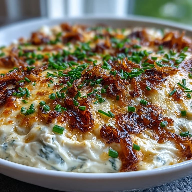 Save One evening, I served this dip during a football game watch party, and my friend who claims to hate onions scraped the dish for seconds. He asked what made it so good, and I told him about the caramelized onions hidden inside. He laughed, admitting he'd been scooping them up without realizing, won over by the sweetness and smoky cheese. That's when I knew this recipe had real magic.