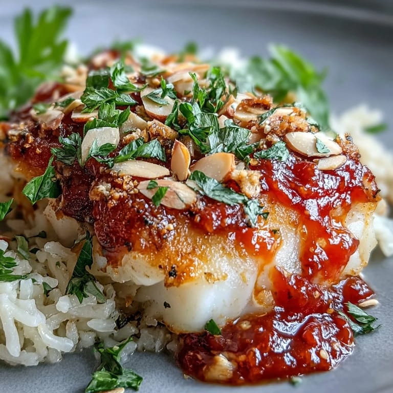 Save The smell of toasted almonds filling the kitchen while fish bubbles gently in tomato sauce is one of those scents that makes everyone wander in asking what's for dinner. I stumbled onto this combination after buying too many almonds and needing something beyond snacking. The spices clinging to the warm nuts, the sweetness of roasted tomatoes soaking into tender cod, it all came together so easily I almost didn't trust it. Now it's my go-to when I want something that tastes special but doesn't demand much effort. It feels like the kind of meal you'd order out, but better because you made it yourself.